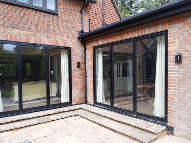 Rear extension with aluminium bifold doors creating a seamless connection between indoor and outdoor space.